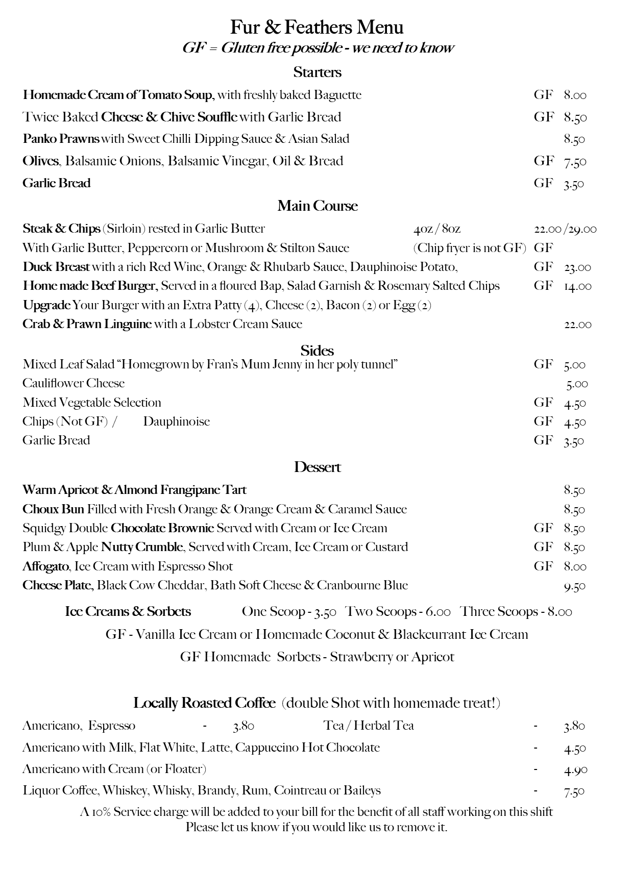 Sundays menu is a selection from our week day menu plus roast dinners
